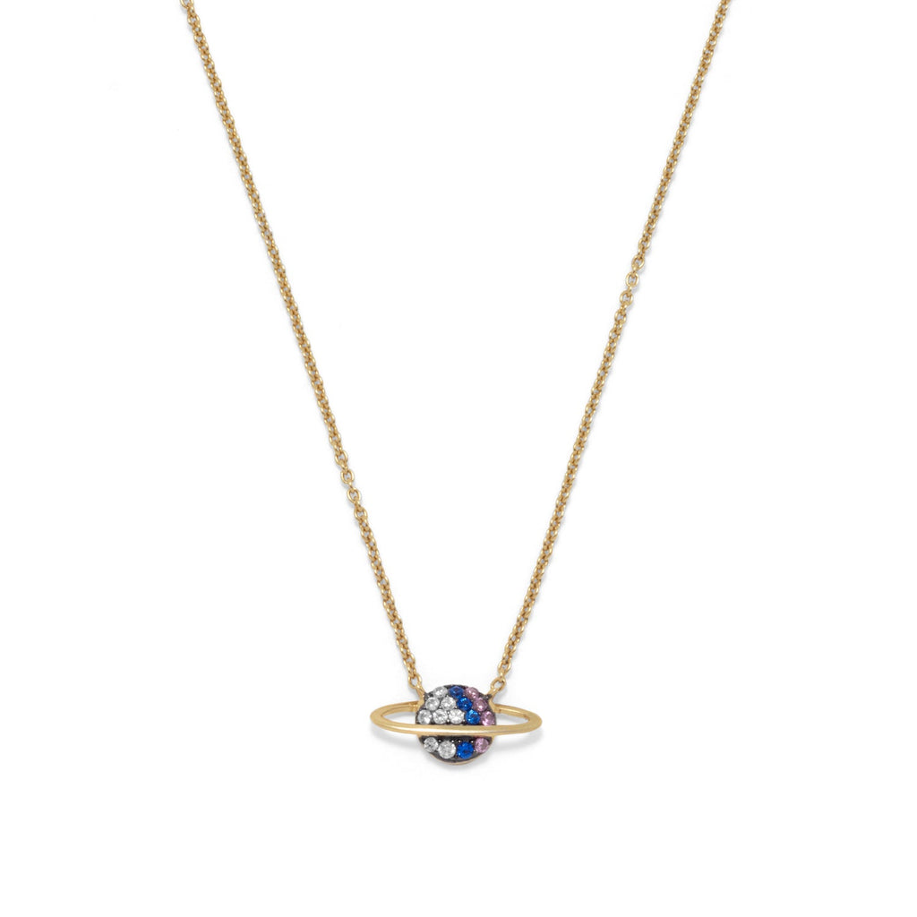 14 Karat Gold Plated Mini CZ Planet Necklace