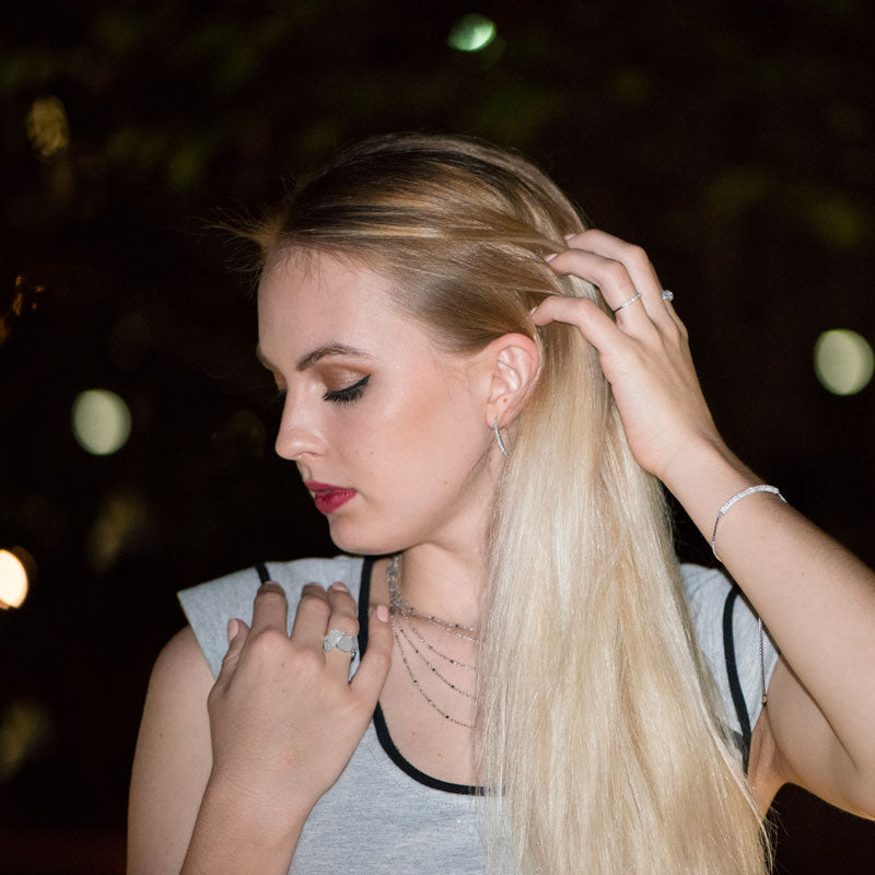 Rhodium Plated Diagonal CZ Ribbon Ring