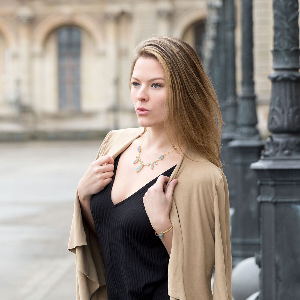 14 Karat Gold Plated Amazonite and Labradorite Cuff