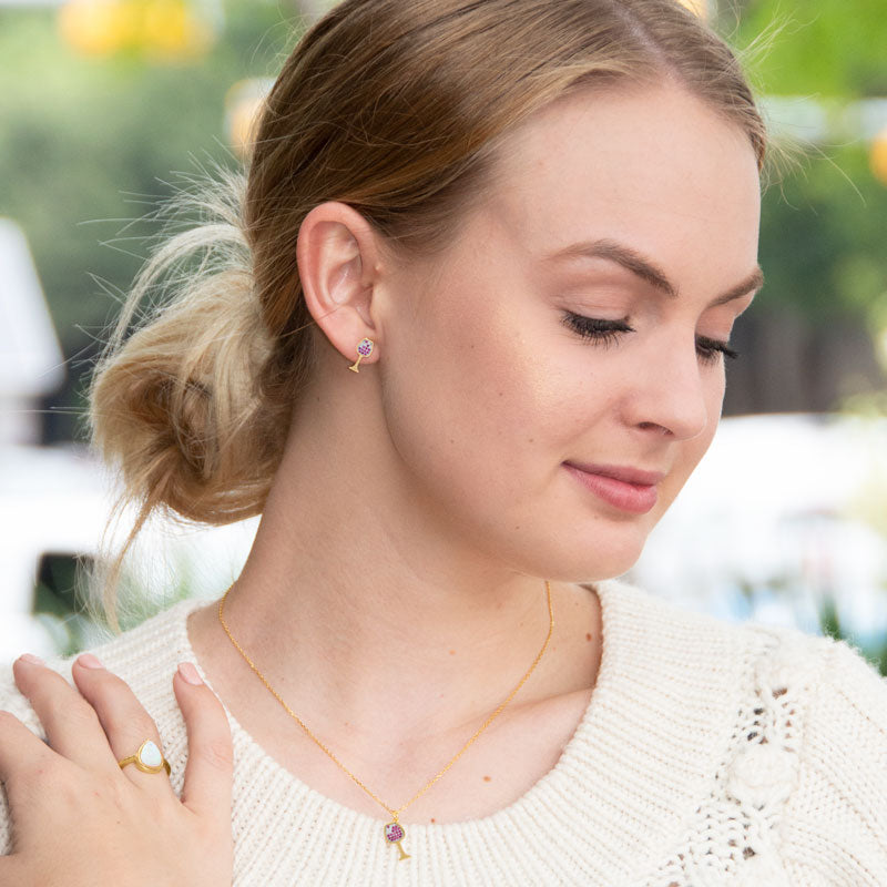 14 Karat Gold Plated CZ Red Wine Glass Stud Earrings