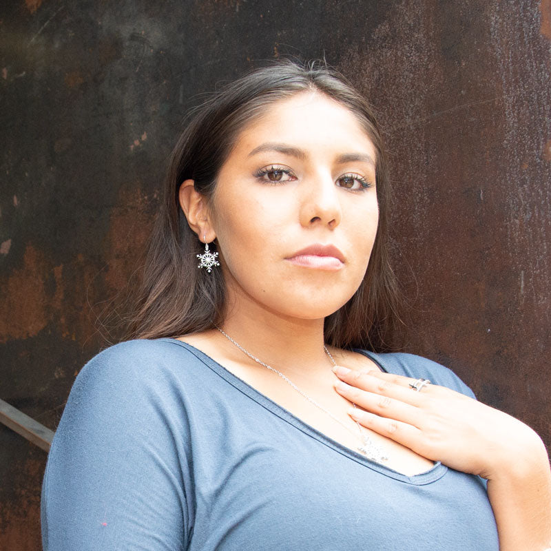 Rhodium Plated 8 Point CZ Snowflake Earrings