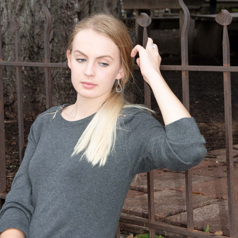 Oxidized Celtic Knot Pear Outline French Wire Earrings