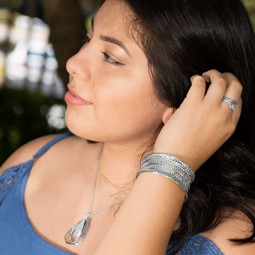 27.5mm sterling silver concave cuff bracelet with weave design. .925 Sterling Silver