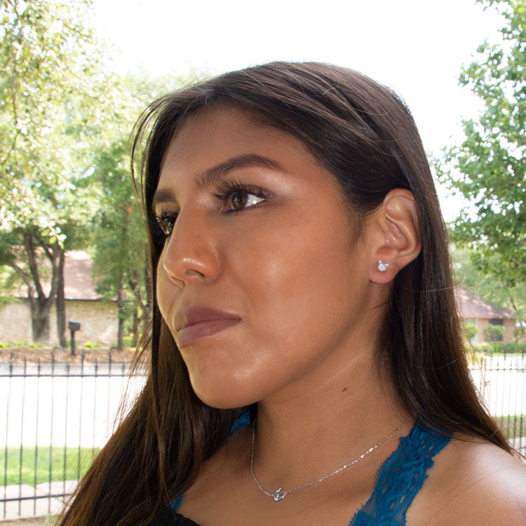 Fun size shiny sterling silver 4mm crystal cat face stud earrings. Earrings measure 6.2mm x 5.8mm. .925 Sterling Silver