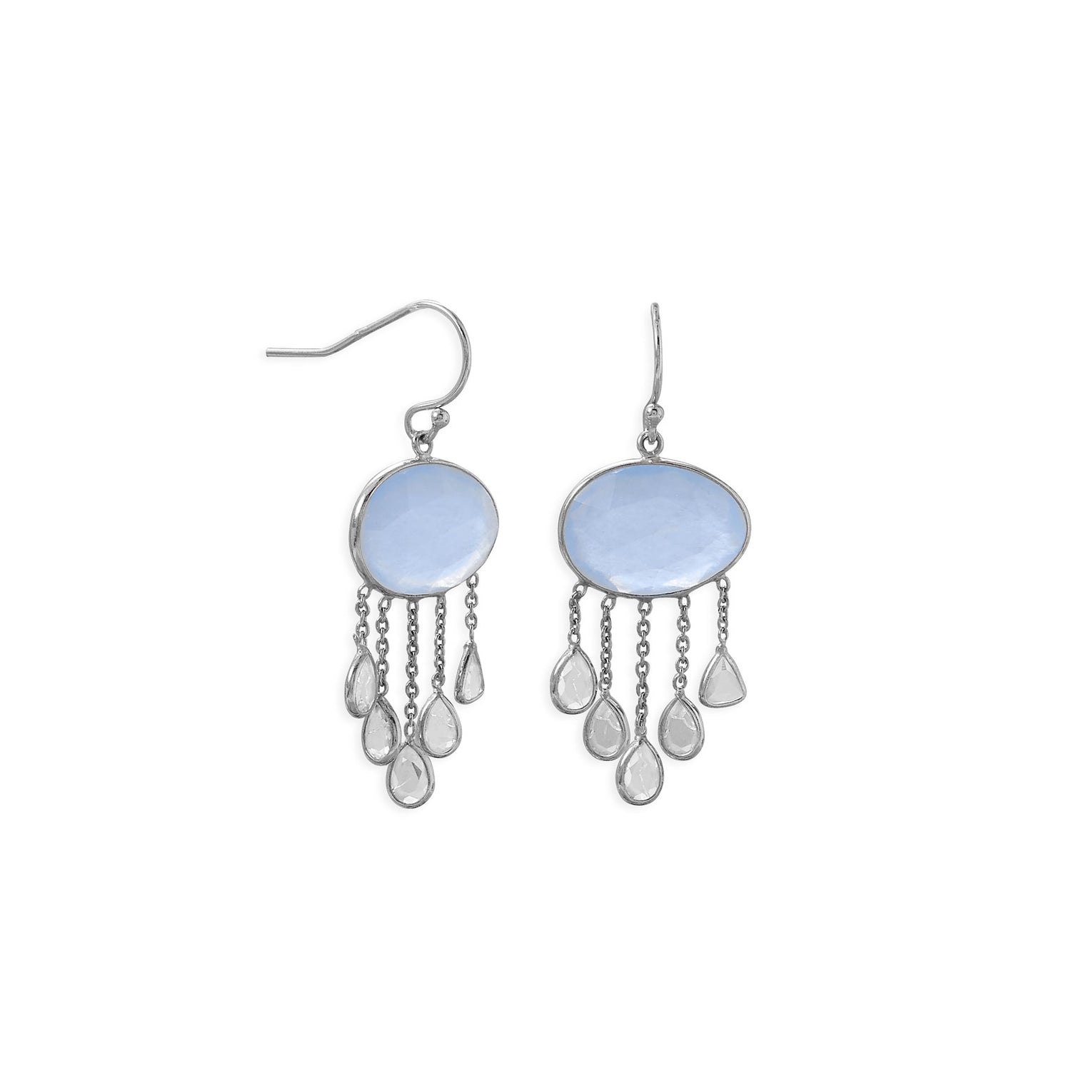 Rhodium Plated Chalcedony and White Quartz Drop Earring